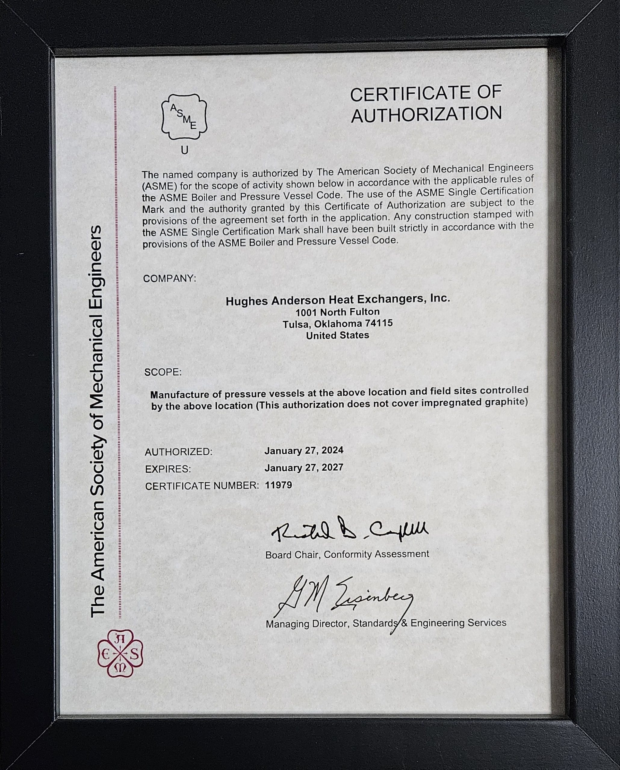 Hughes-Anderson Heat Exchangers is managed by a team of experts whose job it is to maintain and improve our standard operating procedures and to ensure our commitment to supplying our customers with the highest quality product manufactured in our industry.